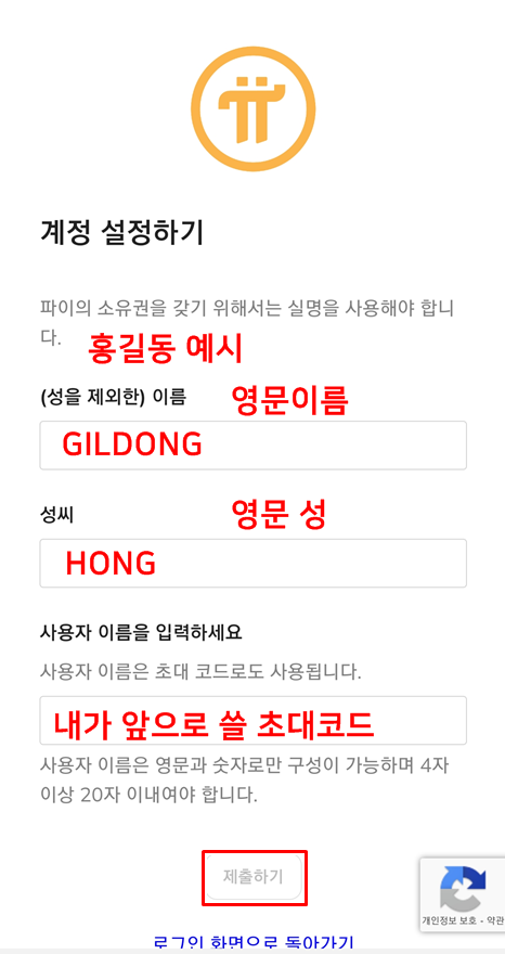 사용자 이름은 앞으로 쓸 나의 초대코드이자