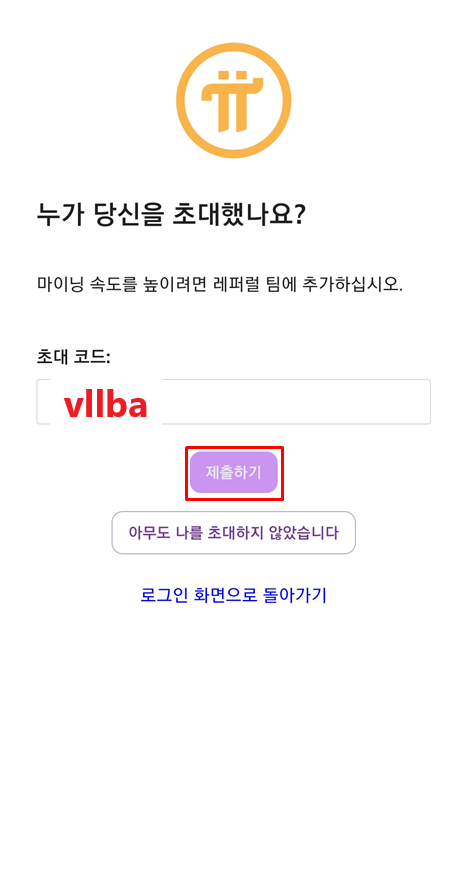 초대인의 코드를 입력하는 단계입니다.