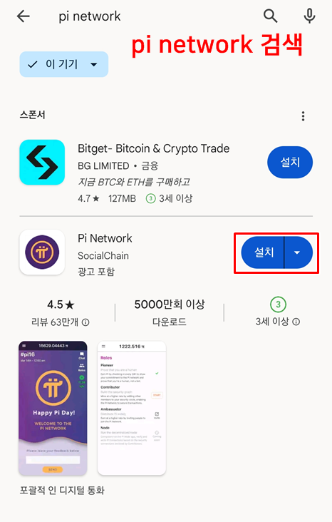 pi network 검색 후 앱을 다운 받습니다.