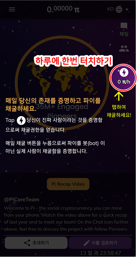 1파이를 받음과 동시에 초대인이 파이 채굴을 할 시